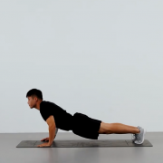 (1) Assume a four-point support position with hands and toes on the ground. Keep arms straight, hands directly beneath shoulders, and legs extended.