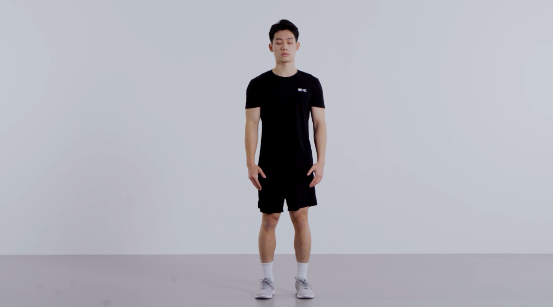 Key Points: Stand with hands relaxed at your sides and feet shoulder-width apart. Close your eyes, breathe evenly, and maintain stability. Repeat this exercise, holding for 20 seconds.