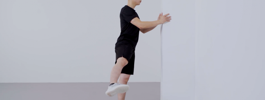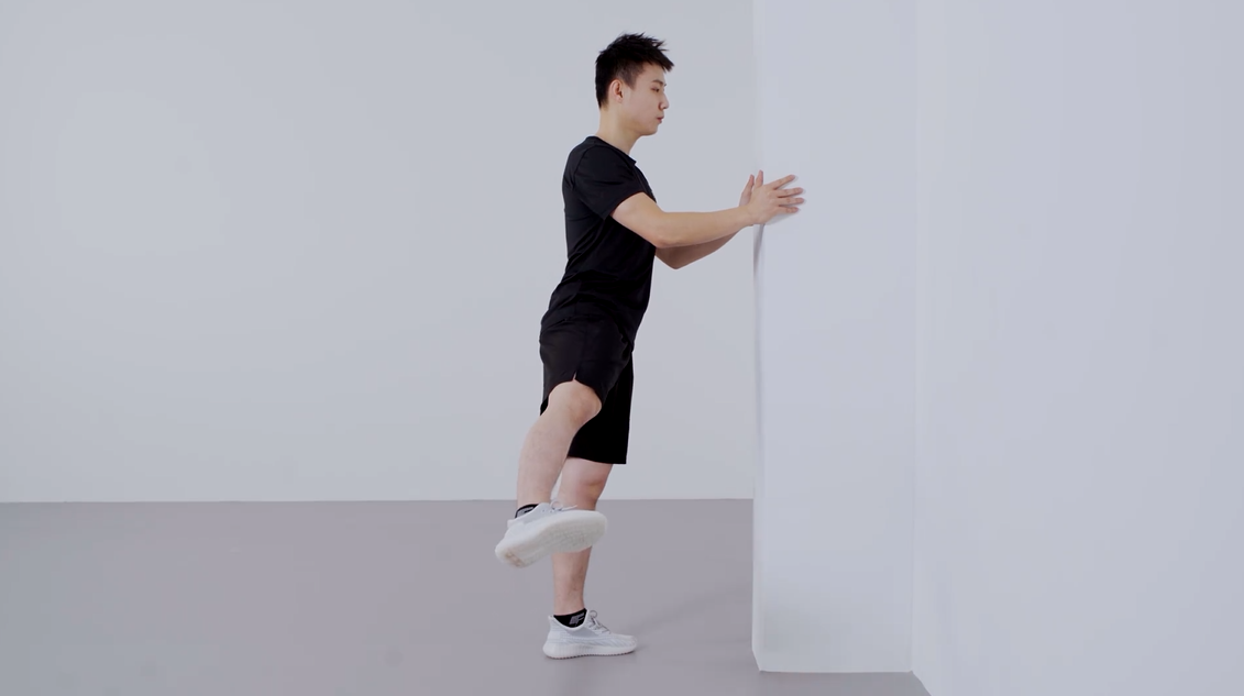 Key Points: Stand facing a wall with hands resting on it at arm’s length. Keep the unaffected leg stationary while extending the affected leg outward. Perform 2 sets of 8 repetitions each.