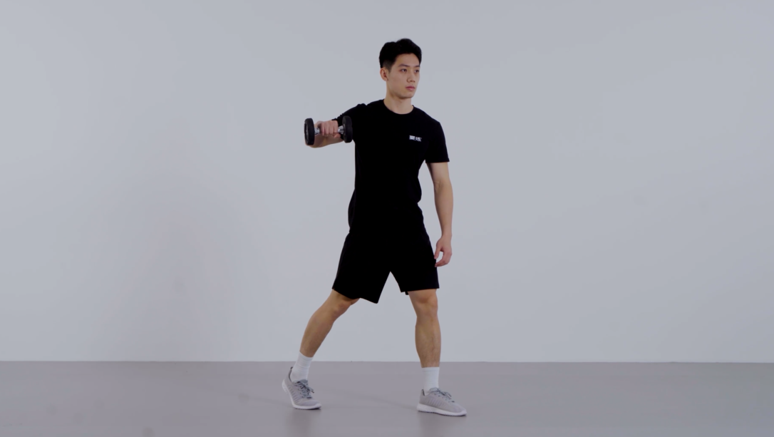 Stand with the affected arm holding a dumbbell. Lean forward, then pull the dumbbell upward while slowly rotating your torso backward. Avoid rushing the movement. Repeat. Duration: Approximately 30 seconds.
