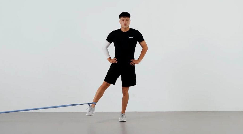 Key Points: Perform this exercise while standing. Keep your upper body upright, clench your fists, and raise your forearms toward your chin, positioning them about a fist’s width away from your chin. For your lower body, keep the affected leg on the ground while lifting the healthy leg backward; the toes should touch the ground lightly but not rest flat on it. Then, carefully and slowly lower yourself into a squat. Do not squat too deeply; a slight squat is sufficient. While performing this exercise, pay attention to the direction of your knees—they must always point toward your toes to protect your knees. Practice: Repeat this exercise, performing 3 sets of 10 repetitions each.